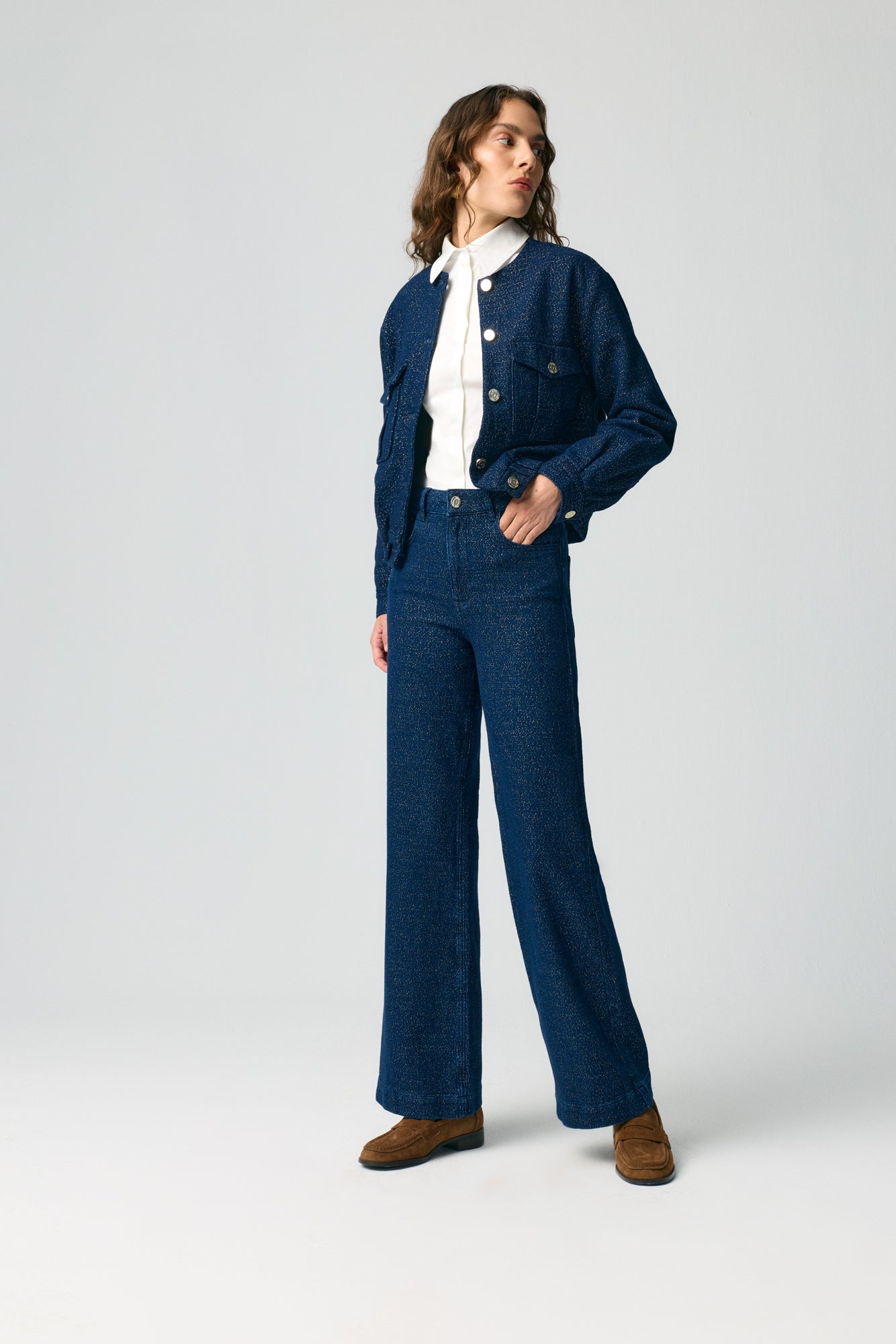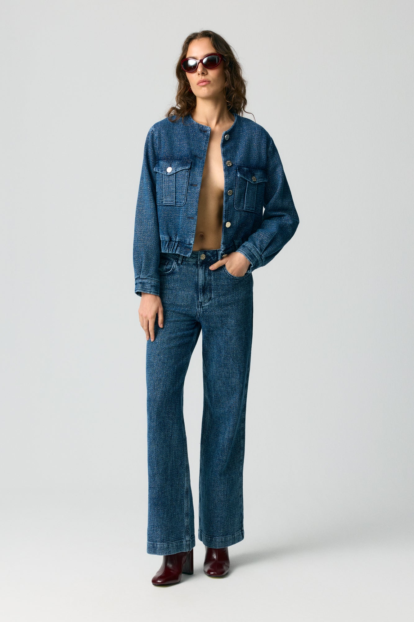 - Metal düğmeli pantolon